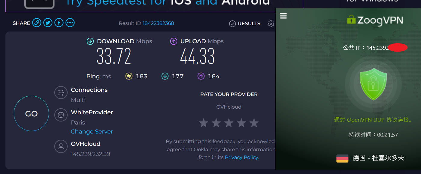 ZoogVPN 德国节点连接也非常给力,可称为德国优秀VPN